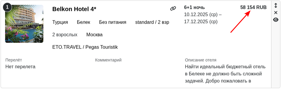 а кликом по цене можно изменить стоимость туров, которые Ваш турист рассматривает.