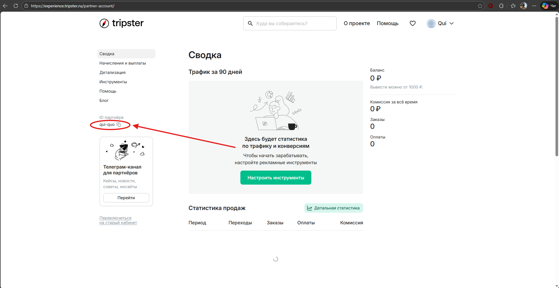 Шаг 3. В кабинете партнера найдите "ID партнёра" и скопируйте значение.