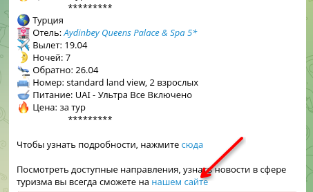 Таким же образом можно добавить в шаблон спрятанные в текст ссылки на любые ваши соц.сети, видеообзоры по отелям, направлениям и так далее.