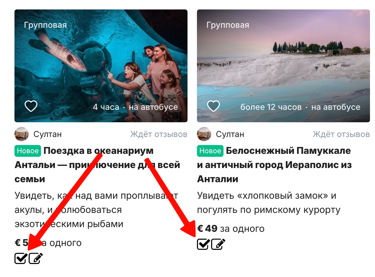 Способ №2. Добавляем на подборку кнопку, чтобы турист сам выбрал экскурсию на Tripster