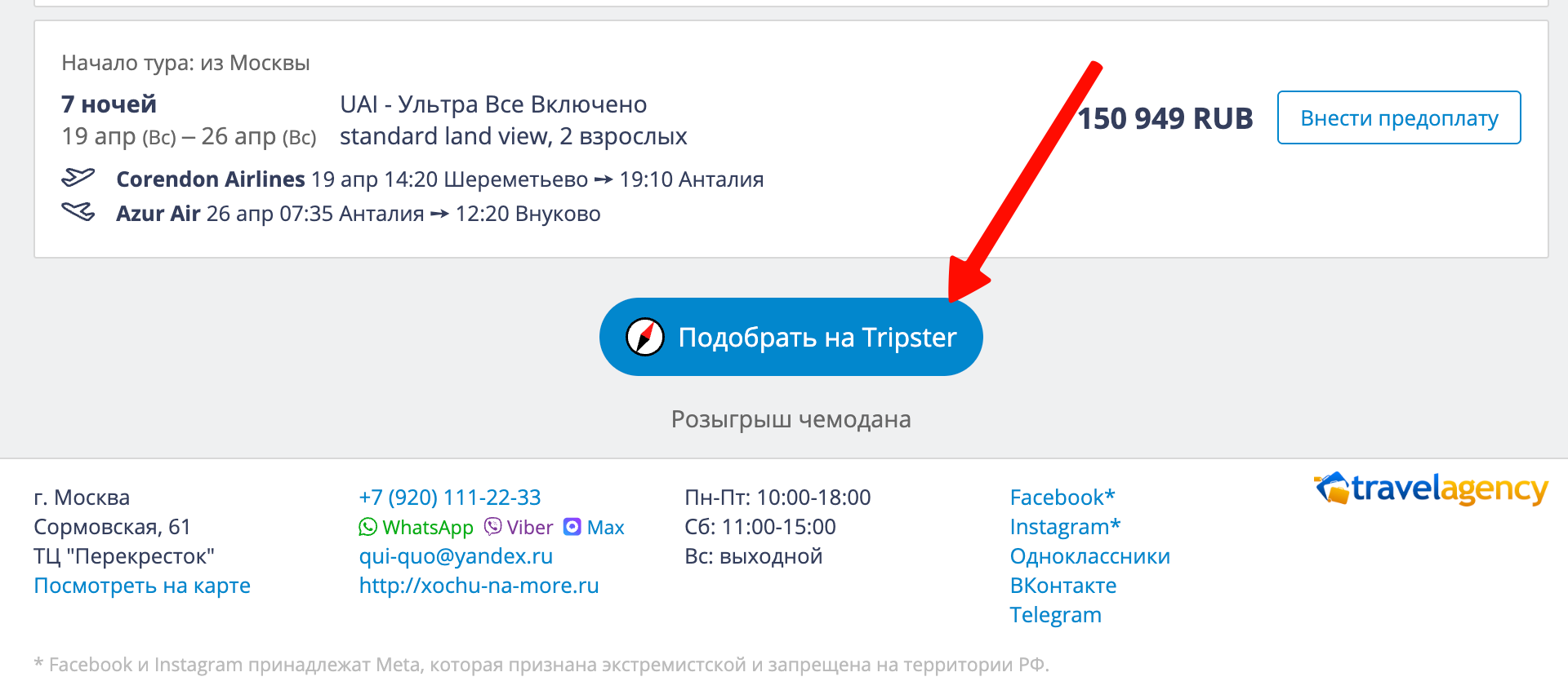 Сайт Tripster можно открыть и самостоятельно, без помощи кнопки, упомянутой выше, она просто экономит вам пару кликов.