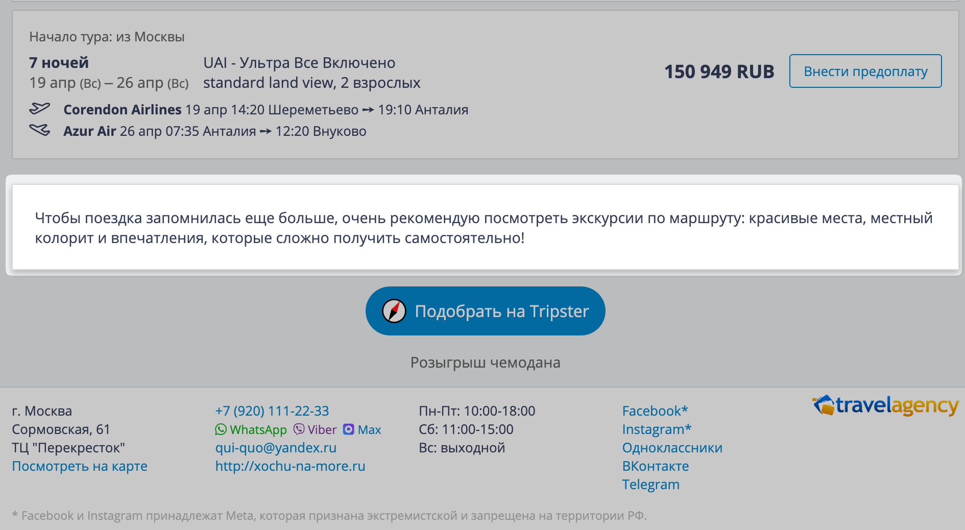 2. Вы можете добавить на подборку кнопку, при нажатии на которую турист откроет сайт Tripster, сам найдёт понравившийся вариант экскурсии и забронирует.